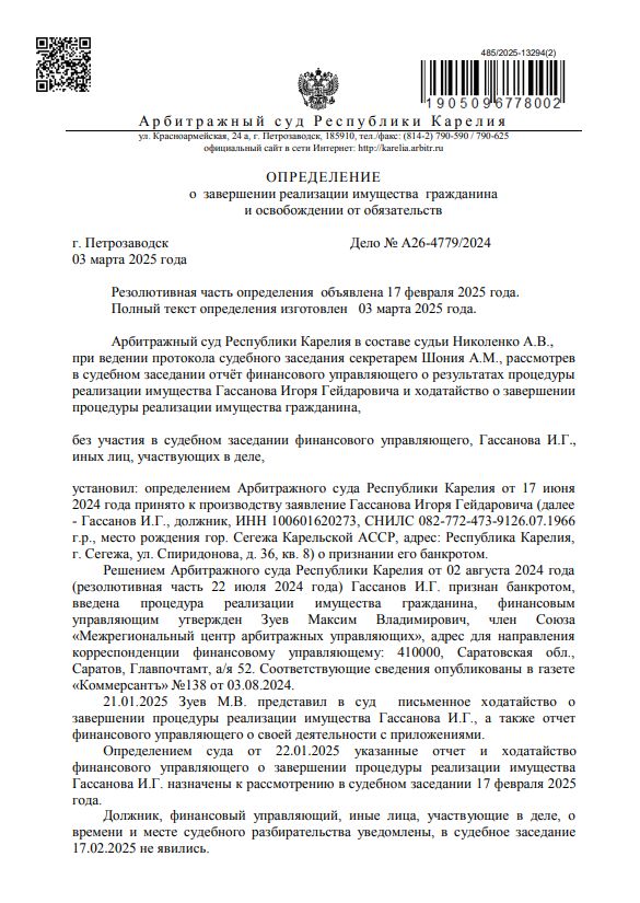 Освободить Гассанова Игоря Гейдаровича от исполнения обязательств.